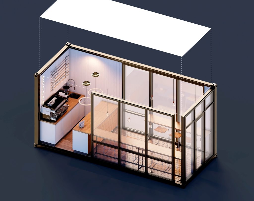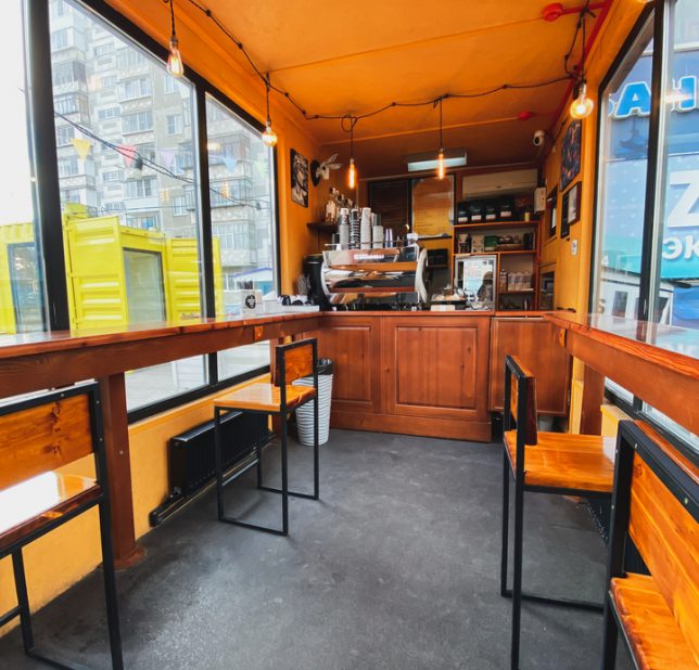 Требовалось создать большую кофейню из 40 футового контейнера с отправкой в Ухту.
